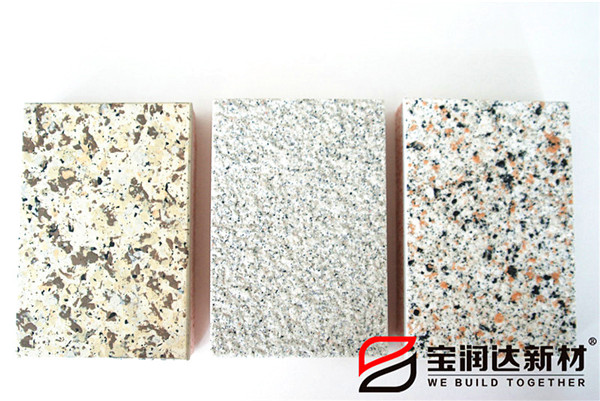 寶潤達一體板飾面層采用真石漆,多彩漆,水包水,水包砂,乳膠漆,實色/金屬氟碳超3000種顏色定制,可根據(jù)石材定做樣品