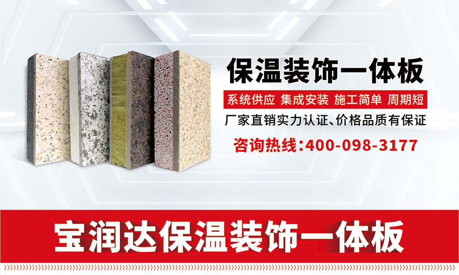寶潤達保溫一體板由硅酸鈣板和保溫層復合加工而成。具有高檔裝飾效果、耐久保護、高效節能,耐候、抗污染、耐酸雨、附著力強、致密性好,施工方便特點,壽命達幾十年以上。