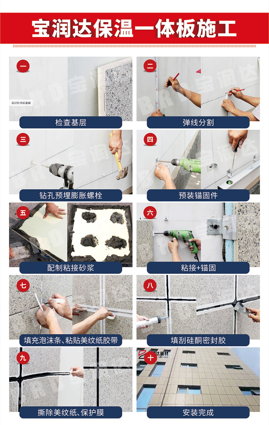 寶潤達外墻保溫一體板施工九步驟
